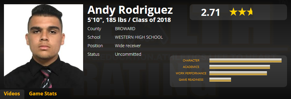 Andy Rodriguez is an upcoming senior and a wide receiver on the Wildcats offense coming into this fall season. Andy is another student athlete that is working on his PTRG Certification that plays for Western High School in Davie, Florida, lead by Head Coach Adam Ratkevich.