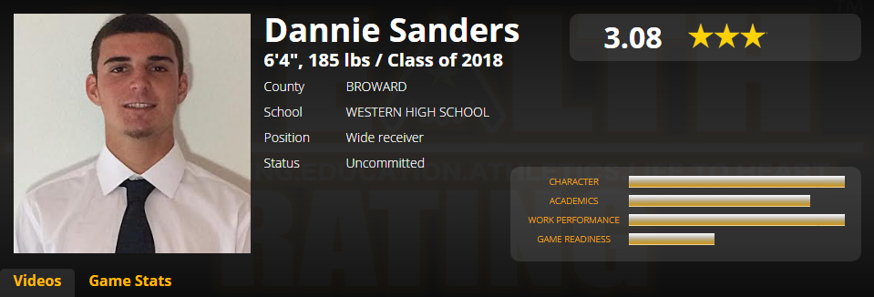 Danny plays for Western High School in Davie, Florida, lead by Head Coach Adam Ratkevich, and they are coming off their best season in history of the school with a record 9-1 regular season and a first round appearance into the state playoffs. They have plenty of returning starters to make a run for the championship this season.