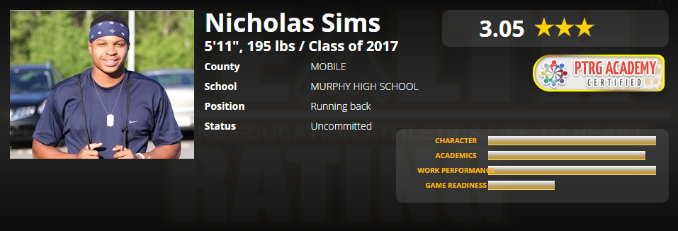 Article by Coach Stoutt / Testimonials / alabama athlete, murphy high school, nicholas sims, running back, scholar athlete, student athlete